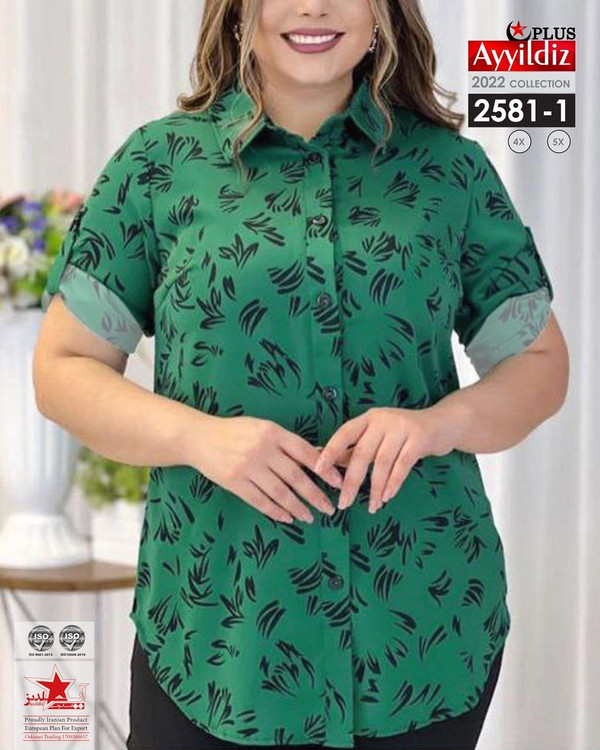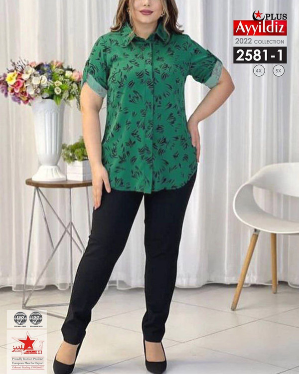 کد 2581 شومیز مجلسی بیگ سایز آییلدیز دوخت و کیفیت تضمینی تنخور عالی سایز 4 مناسب 44 تا 48 سایز 5 مناسب 50 تا 56 جنس کرپ حریر فرانسه اعلا رنگ : تصویر کاتالوگ ارسال فوری