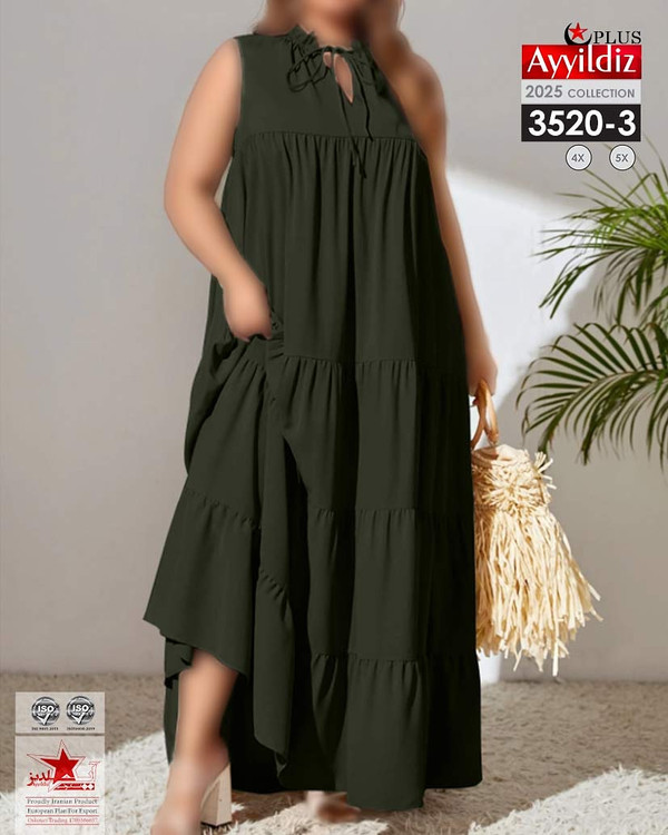 کد 3520 پیراهن ساحلی بیگ سایز آی یلدیز دوخت و کیفیت تضمینی تنخور عالی سایز 4 مناسب 44 تا 48 سایز 5 مناسب 50 تا 56 جنس کرپ سوزنی اعلا رنگ : مشکی کله غازی یشمی ارسال فوری