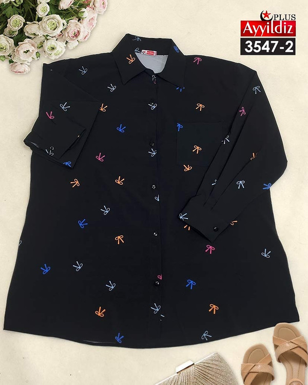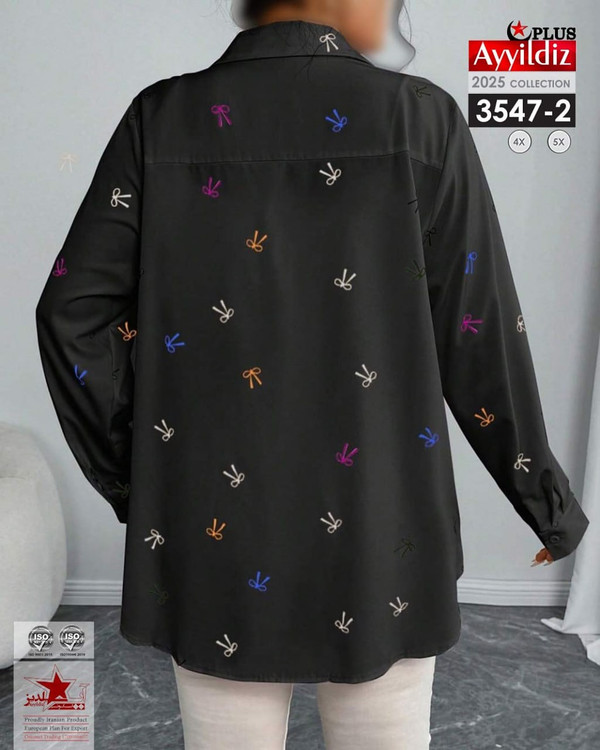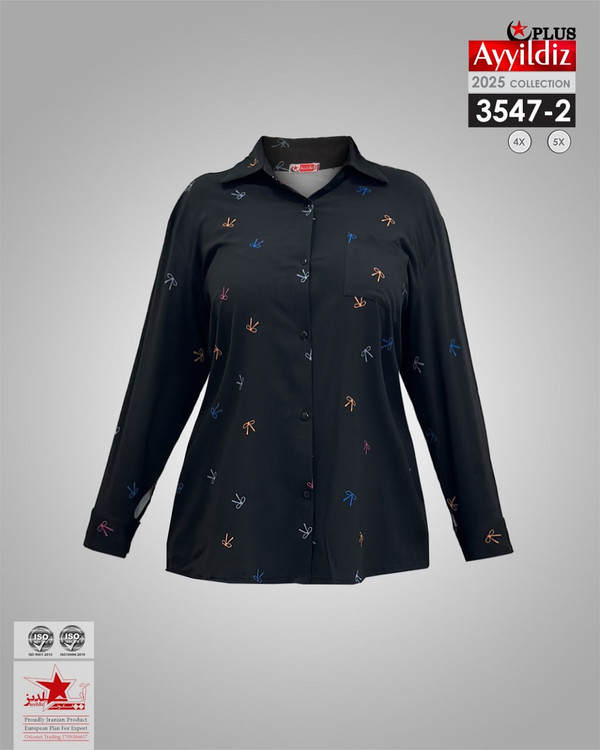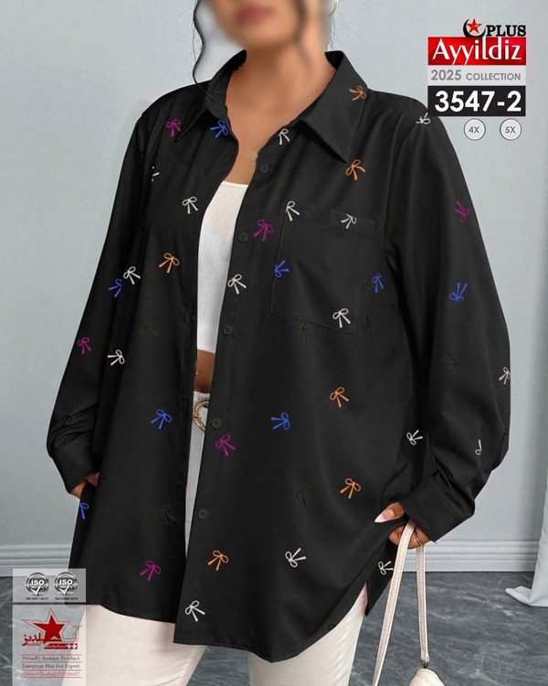 کد 3547 شومیز مجلسی ترند بیگ سایز آییلدیز دوخت و کیفیت تضمینی تنخور عالی سایز 4 مناسب 44 تا 48 سایز 5 مناسب 50 تا 56 جنس کرپ حریر فرانسه اعلا رنگ : مشکی و آبی ارسال7روزه