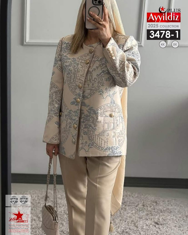 کد 3478 کت مجلسی بیگ سایز آی یلدیز دوخت و کیفیت تضمینی تنخور عالی سایز 4مناسب 44تا 48 سایز5 مناسب 50تا 56 جنس شانتون چاپی وارداتی رنگ : تصویر کاتالوگ ارسال فوری