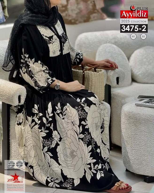 کد 3475 پیراهن بلند بیگ سایز آی یلدیز دوخت و کیفیت تضمینی تنخور عالی سایز 4 مناسب 44 تا 48 سایز 5 مناسب 50تا 56 جنس کرپ حریر اعلا رنگ : مشکی ارسال فوری