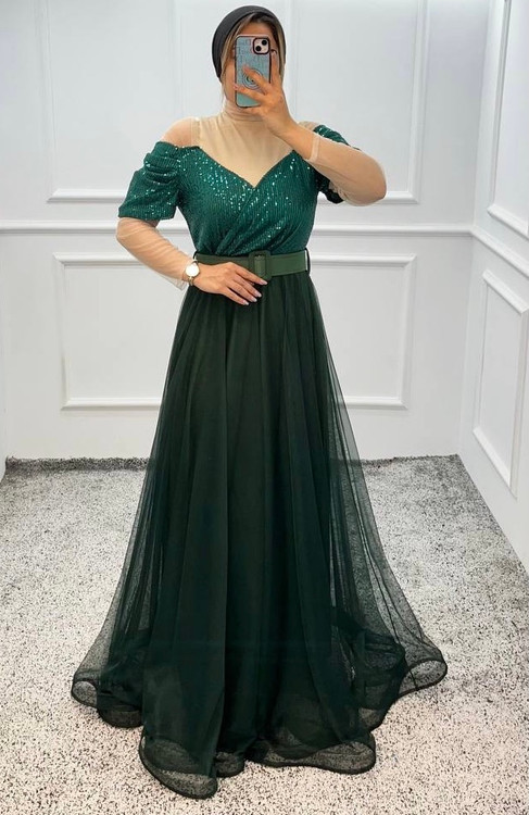 پولک زارا و تور نوار دبی-- کمربند دارد-- قد از سرشانه ١۵۵