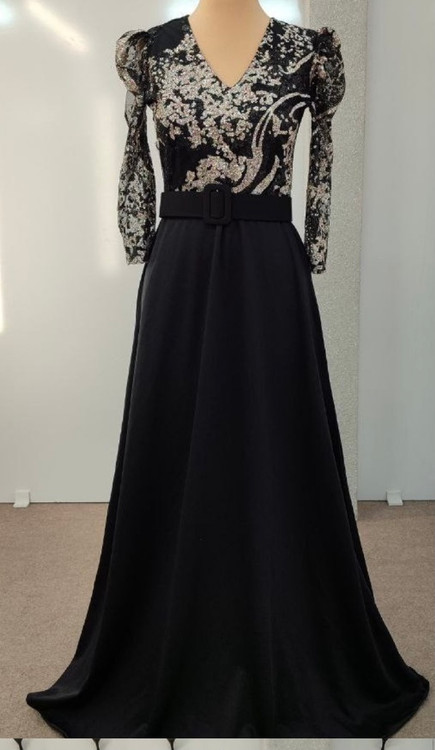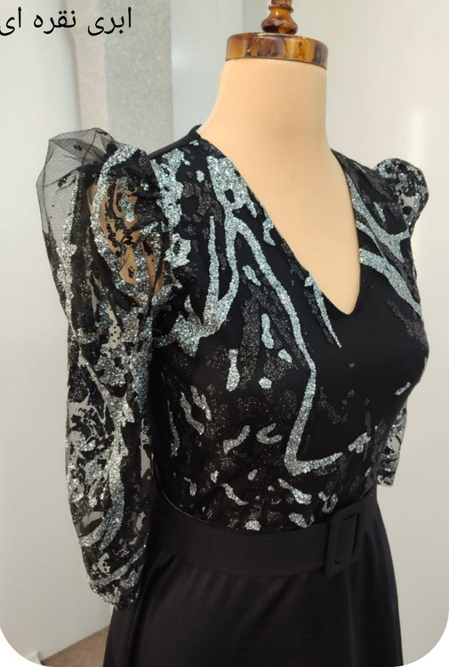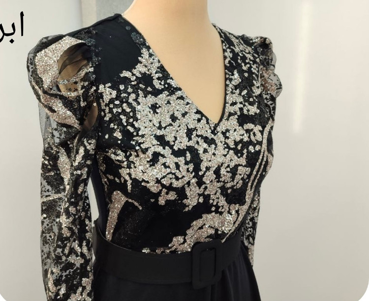 کرپ کش و فلوک شاین-- قد ١۵۵-- پشت زیپ دارد-- کمربند دارد