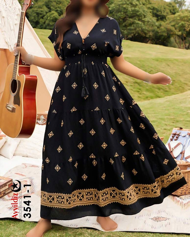 کد 3541 پیراهن ساحلی بیگ سایز آی یلدیز دوخت و کیفیت تضمینی تنخور عالی سایز 4 مناسب 44 تا 48 سایز 5 مناسب 50تا 56 جنس کرپ حریر فرانسه اعلا رنگ : مشکی ارسال فوری