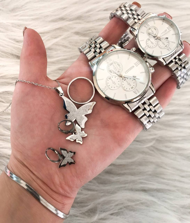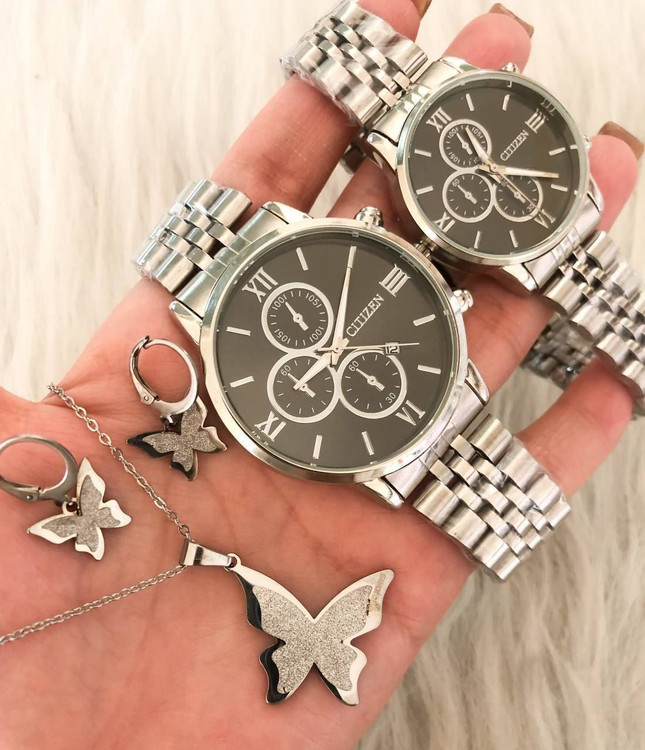 👚نام : ست ساعت سیتیزن زنانه و مردانه باهم بندنقره ای