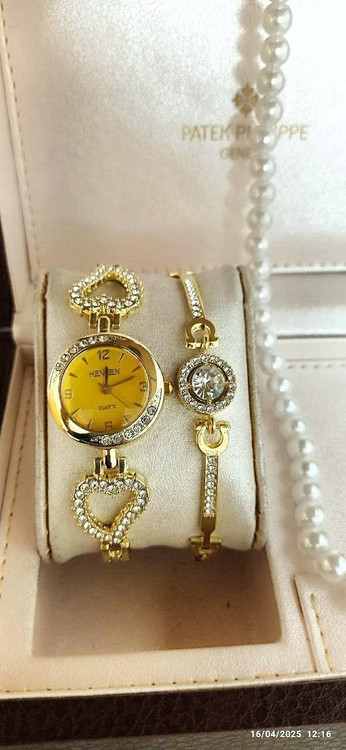 ساعت زنانه یا دخترانه مجلسی طرح قلب صفحه طلایی