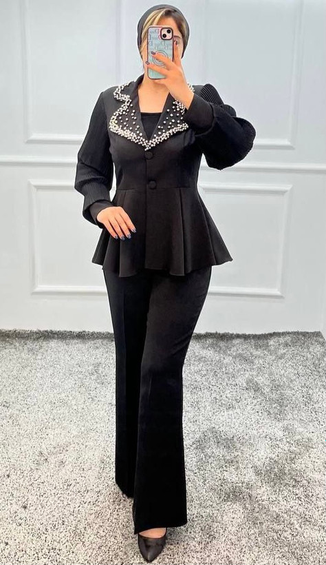 جنس : مازراتی و مروارید نگین پانچی با آستین حریر پلیسه شده -- قد کت ٧٠-- قد شلوار ١٠٠