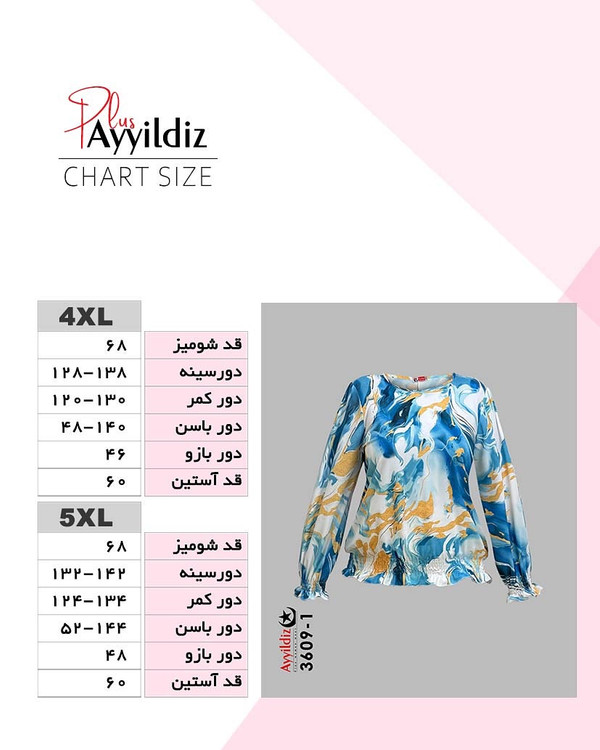 کد 3609 شومیز مجلسی ترند بیگ سایز آییلدیز دوخت و کیفیت تضمینی تنخور عالی سایز 4 مناسب 44 تا 48 سایز 5 مناسب 50 تا 56 جنس کرشه خنک اعلا رنگ : تصویر کاتالوگ ارسال فوری