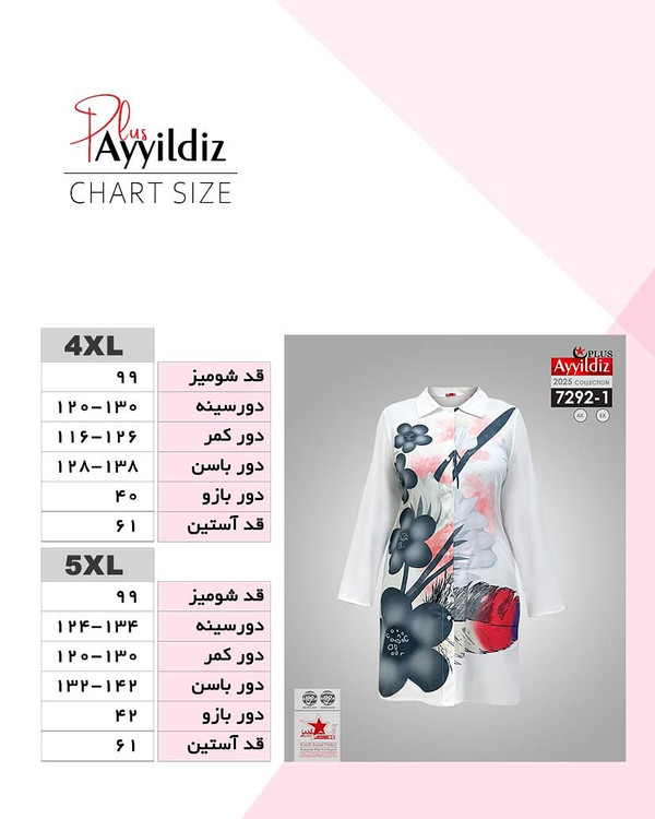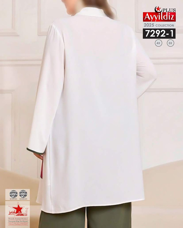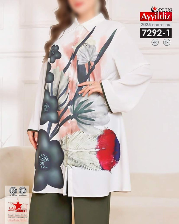 کد 7292 مانتو / تونیک / بیگ سایز آییلدیز دوخت و کیفیت تضمینی تنخور عالی ۴ ایکس مناسب ۴۴ تا ۵۰ ۵ ایکس مناسب ۵۲ تا ۵۸ جنس کرپ حریر اعلا رنگ : تصویر کاتالوگ ارسال فوری