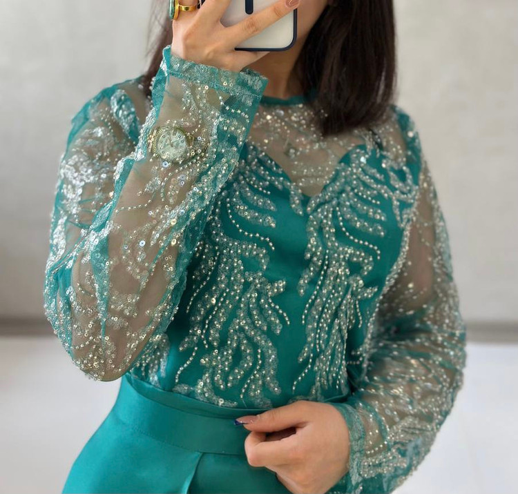 تور تماما منجوق دوزی و پولک دوزی-- دامن ساتن آمریکایی-- لباس دو دامنه می باشد ⚜دامن جدا میشود ⚜قد کار 170 ⚜بالاتنه آستردوزی--پشت کار زیپ میخورد--کار اصلا کش نمیاد