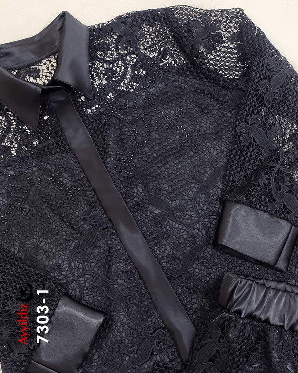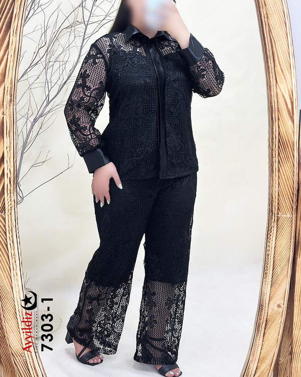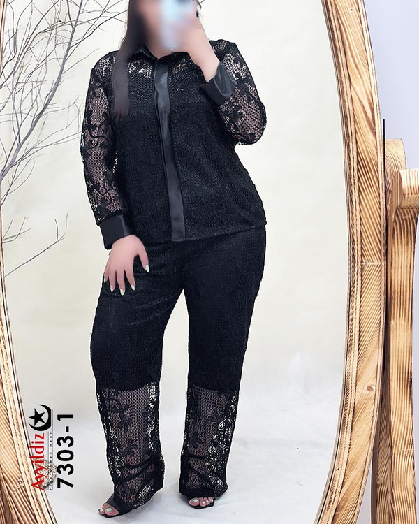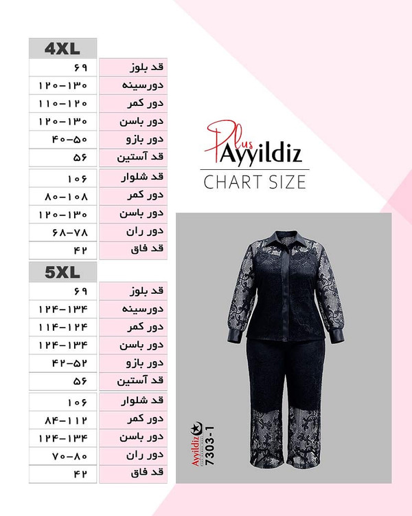 کد 7303 ست دو تیکه شومیز شلوار گیپور سایز بزرگ آییلدیز دوخت و کیفیت تضمینی تنخور عالی سایز 4 مناسب 44 تا 48 سایز 5 مناسب 50 تا 56 جنس ساتن و گیپور وارداتی اعلا رنگ مشکی ارسال 10 روز پس از ثبت