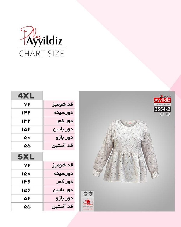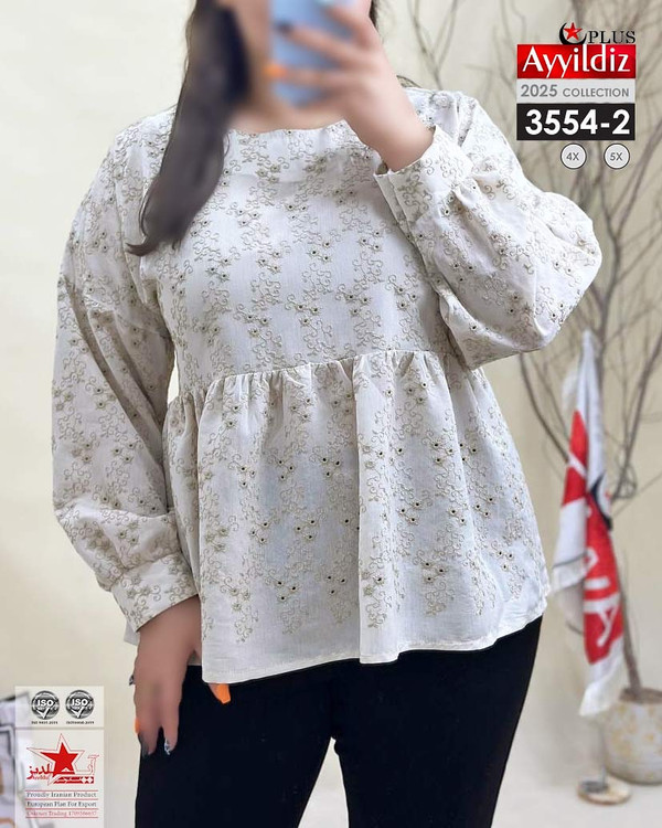 شومیز مجلسی بیگ سایز آییلدیز دوخت و کیفیت تضمینی تنخور عالی سایز 4 مناسب 44 تا 48 سایز 5 مناسب 50 تا 56 جنس خامه دوزی خنک اعلا رنگ : کرمی