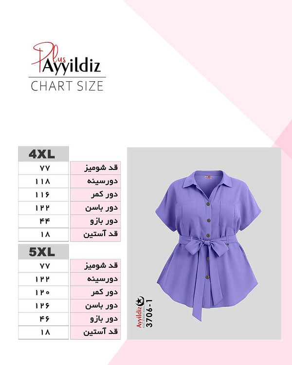کد 3706 شومیز مجلسی خاص بیگ سایز آییلدیز دوخت و کیفیت تضمینی تنخور عالی سایز 4 مناسب 44 تا 48 سایز 5 مناسب 50 تا 56 جنس : داکرون اعلا رنگ : سرمه ای یاسی و زرشکی ارسال فوری