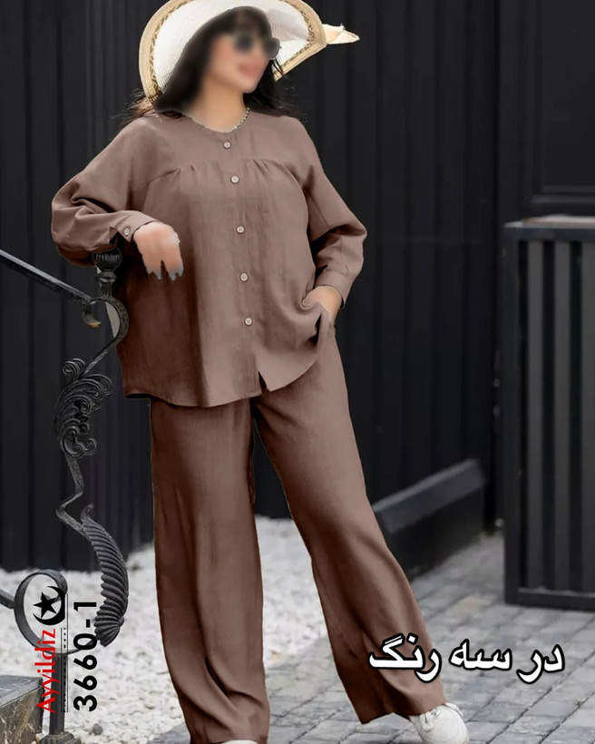 کد 3660 ست مانتو شلوار بیگ سایز آییلدیز دوخت و کیفیت تضمینی تنخور عالی ۴ ایکس مناسب ۴۴ تا ۵۰ ۵ ایکس مناسب ۵۲ تا ۵۸ جنس بزیاق خنک اعلا رنگ : نسکافه ای مشکی و کرمی ارسال فوری