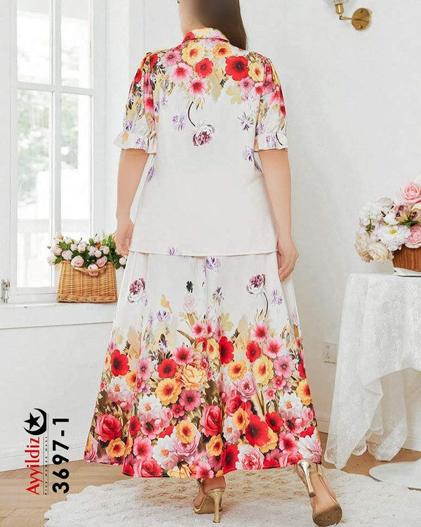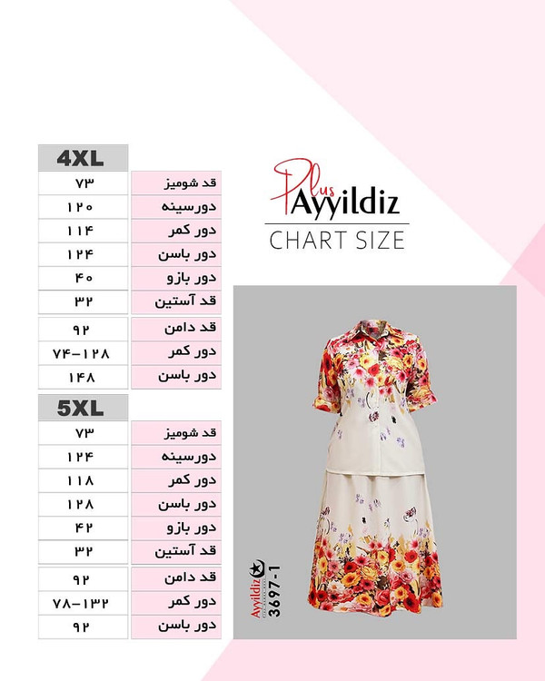 کد 3697 ست شومیز دامن بیگ سایز آییلدیز دوخت و کیفیت تضمینی تنخور عالی ۴ ایکس مناسب ۴۴ تا ۵۰ ۵ ایکس مناسب ۵۲ تا ۵۸ جنس کرپ حریر اعلا رنگ : تصویر کاتالوگ ارسال فوری