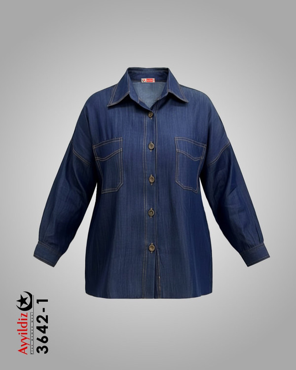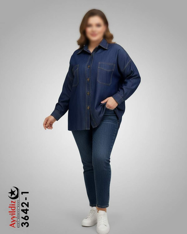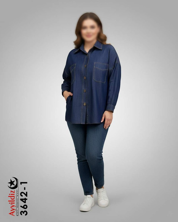 کد 3642 شومیز مانتویی لی شسته بیگ سایز آییلدیز دوخت و کیفیت تضمینی تنخور عالی سایز 4 مناسب 44 تا 48 سایز 5 مناسب 50 تا 56 جنس لی کاغذی شسته شده نازک اعلا رنگ : سرمه ای ارسال فوری