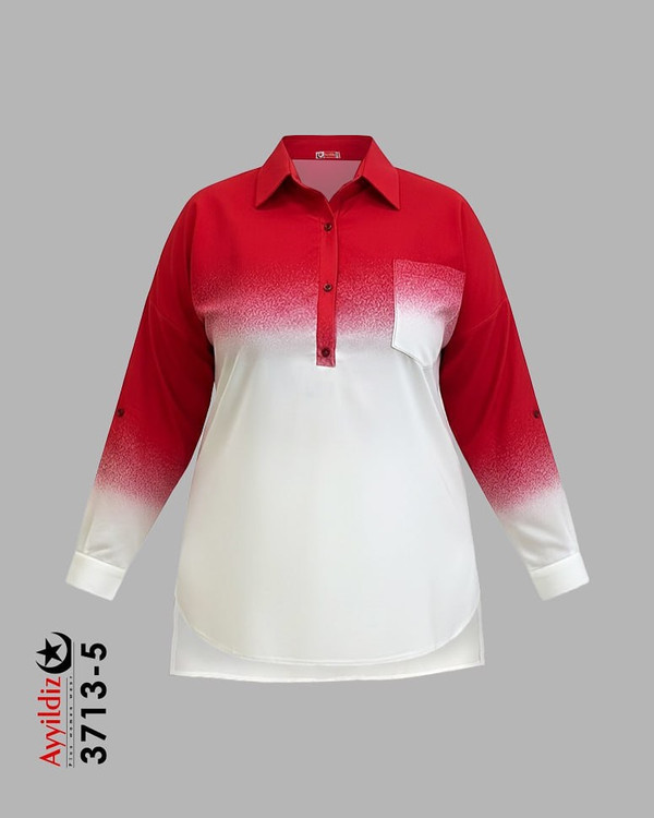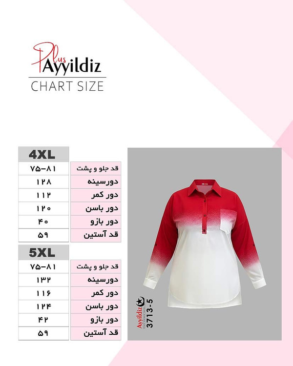 کد 3713 شومیز مانتویی بیگ سایز آییلدیز دوخت و کیفیت تضمینی تنخور عالی سایز 4 مناسب 44 تا 48 سایز 5 مناسب 50 تا 56 جنس : کرپ حریر اعلا رنگ : ابی سبز قرمز مشکی نارنجی ارسال فوری