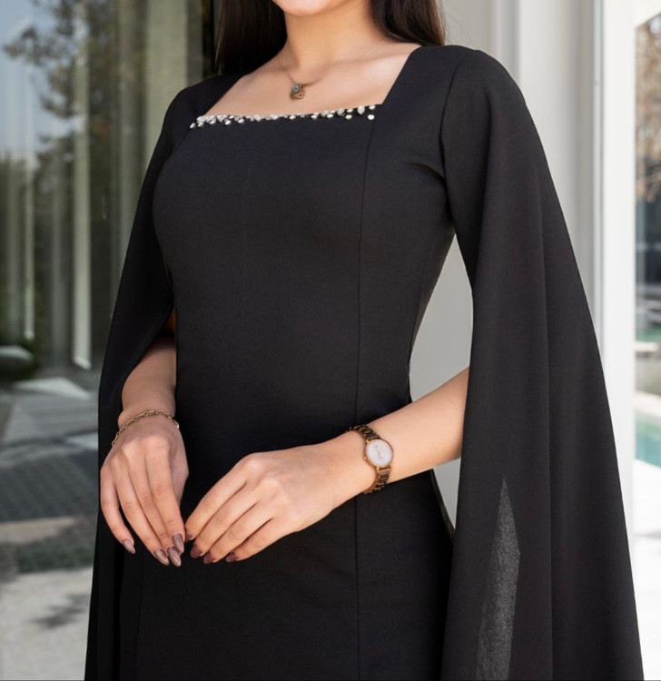کرپ دالقیچ-- قد ١٣۵-- پشت زیپ دارد-- چاک پشت ٣۵ سانت