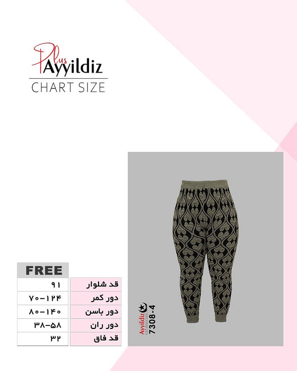 کد 7308 شلوار لگ بافت سایز بزرگ آییلدیز دوخت و کیفیت تضمینی تنخور عالی فری سایز مناسب44الی 52 جنس بافت ضخیم رنگ قهوه ای کرمی یشمی طوسی مشکی ارسال فوری