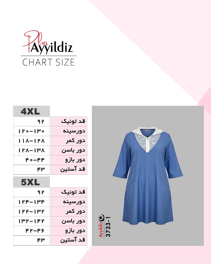 تونیک اسپورت کلاه گیپور زنانه سایز بزرگ کد 3733
