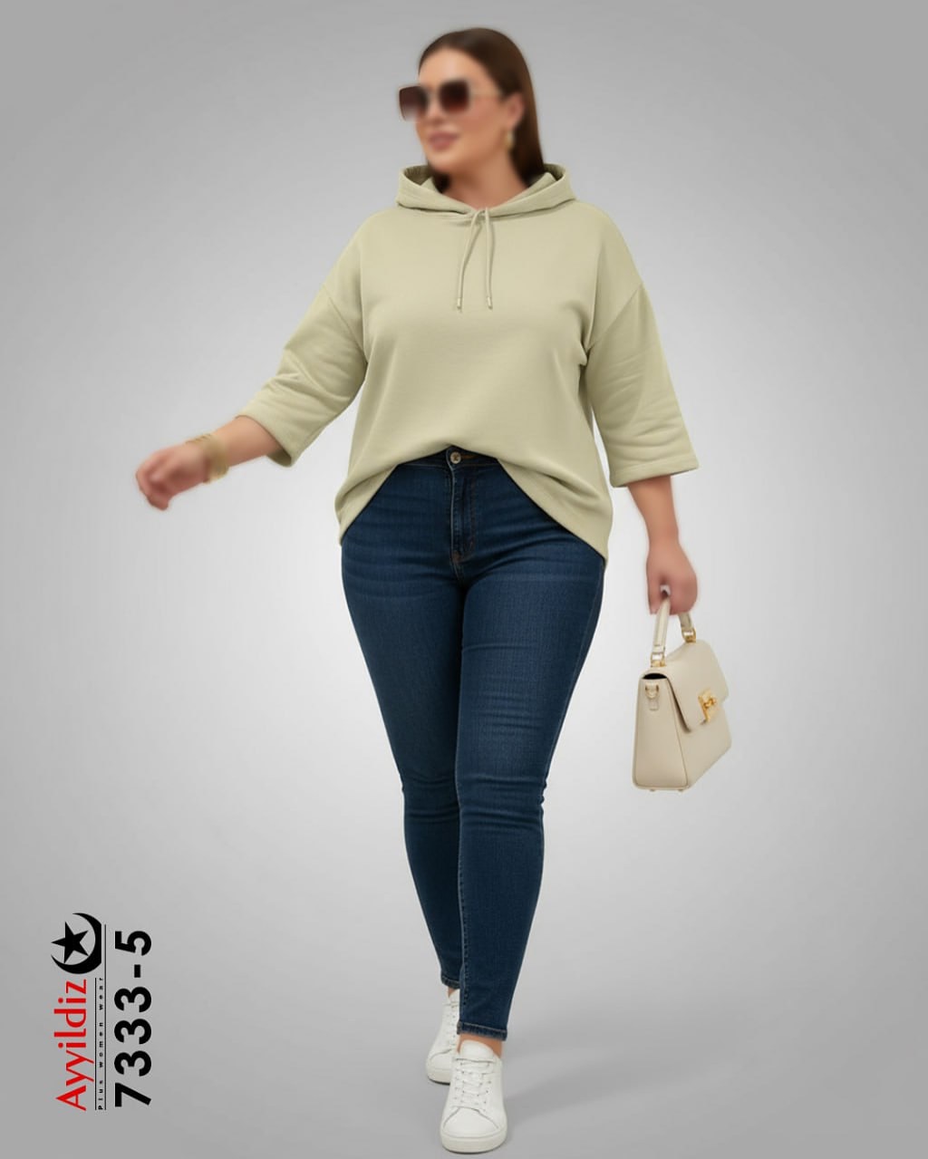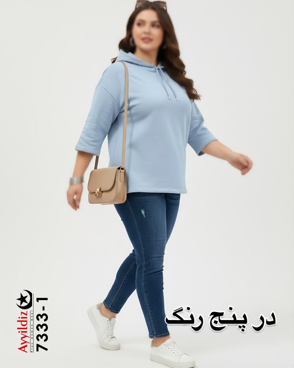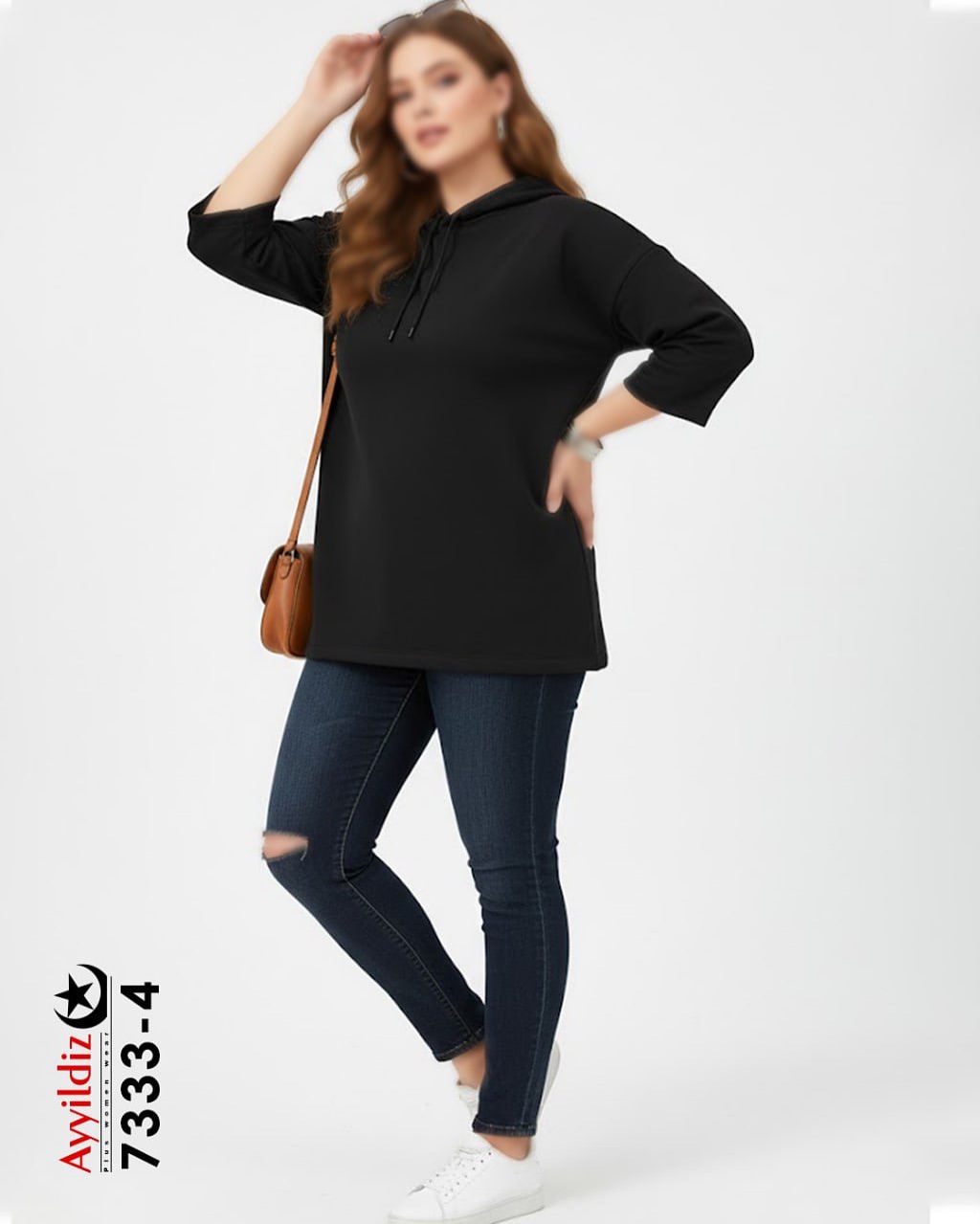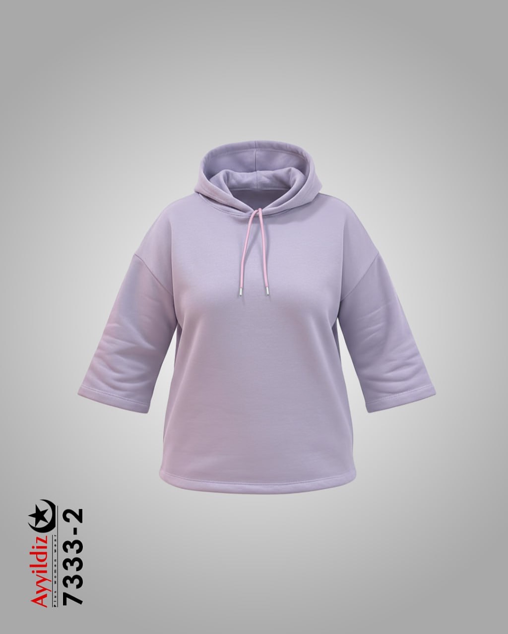 هودی آستین سه ربع با دوخت و کیفیت تضمینی، تنخور عالی. مناسب برای سایز ۴۴ تا ۵۲. جنس نخ پنبه تو کرکدار ضخیم.