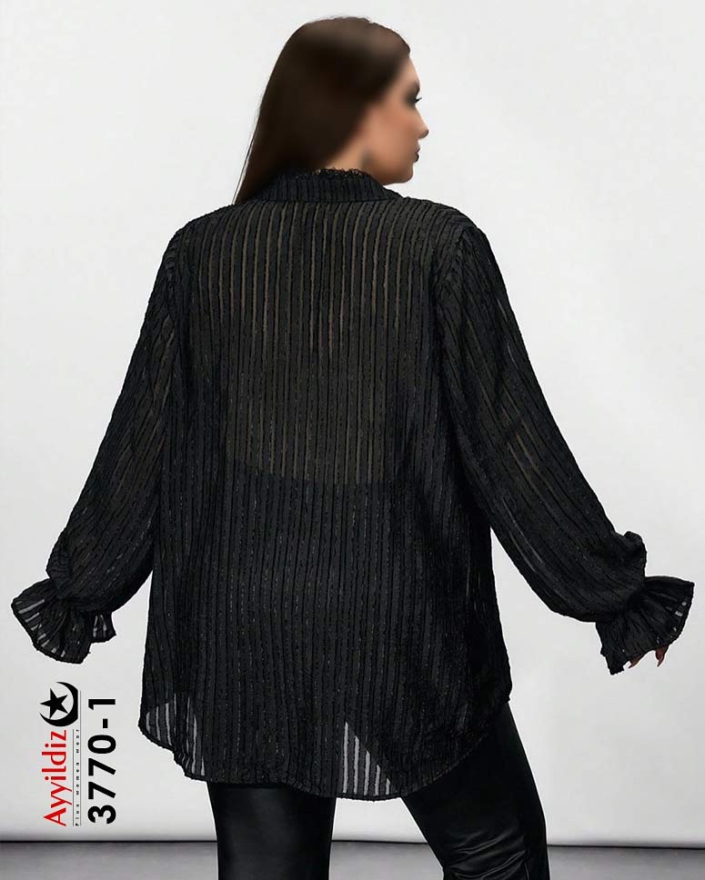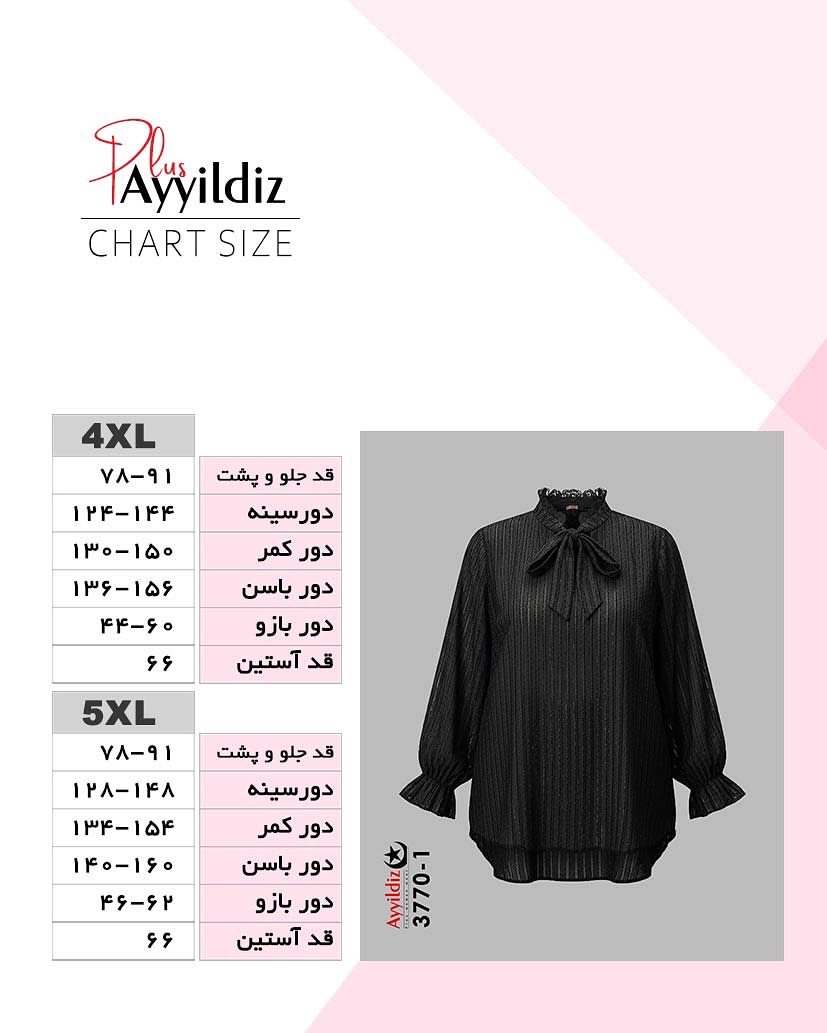 دوخت و کیفیت تضمینی تنخور عالی. سایز ۴ مناسب ۴۴ تا ۴۸ و سایز ۵ مناسب ۵۰ تا ۵۶. جنس گیپور برجسته رنگ مشکی.