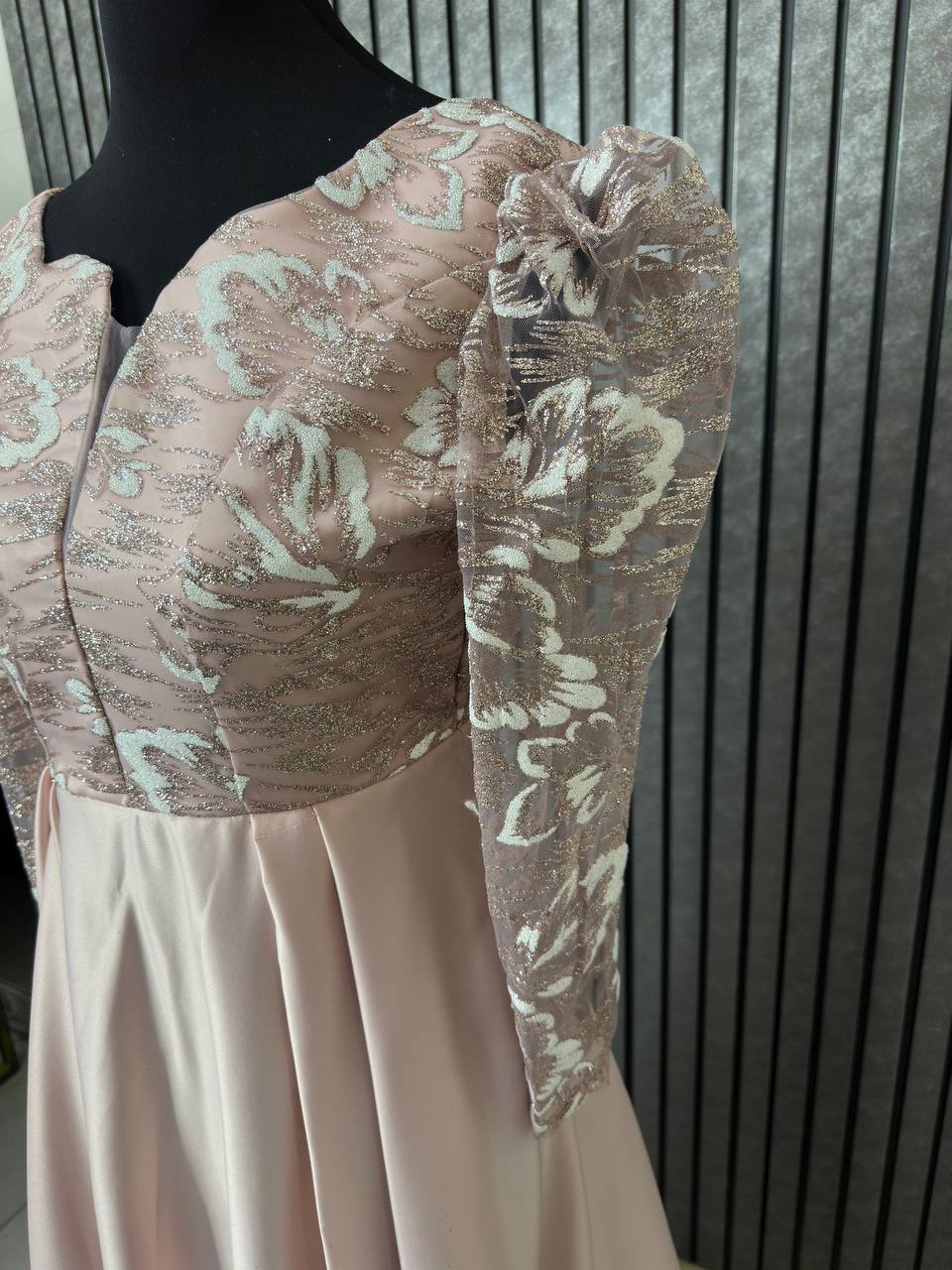 جنس : حریر شاین مرواریدی بدون ریزش -- پایین تنه ساتن--پشت کار زیپ ۵۰ سانتی مخفی-- قد کار ۱۶۰