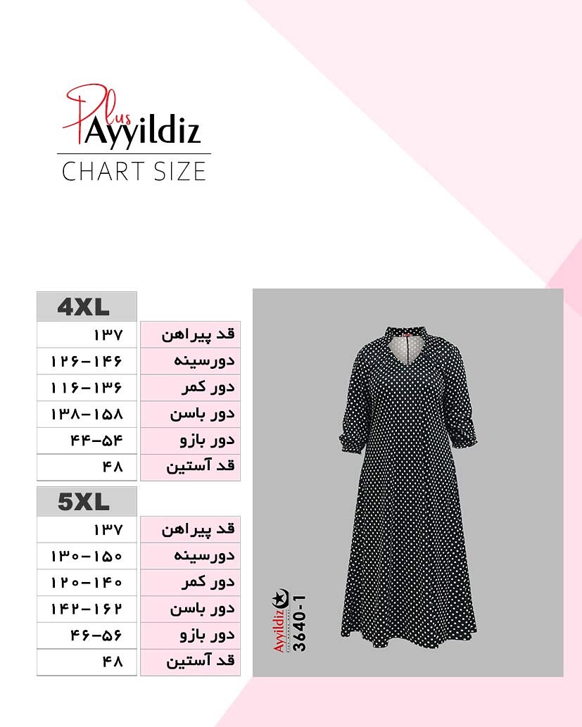پیراهن آستین سه ربع سایز بزرگ زنانه کد 3640