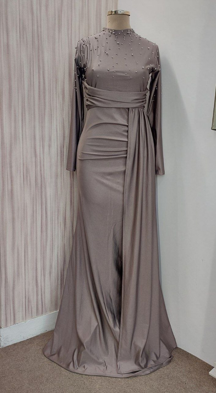 جنس : ساتن کش-- قد حدودا ١٧٠-- پشت زیپ دارد