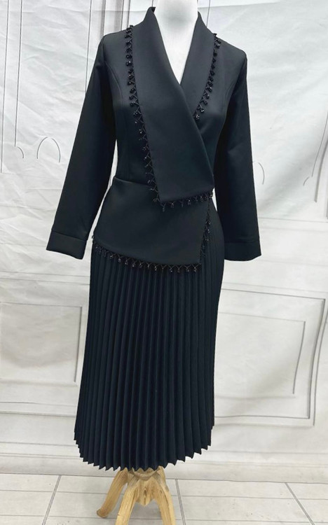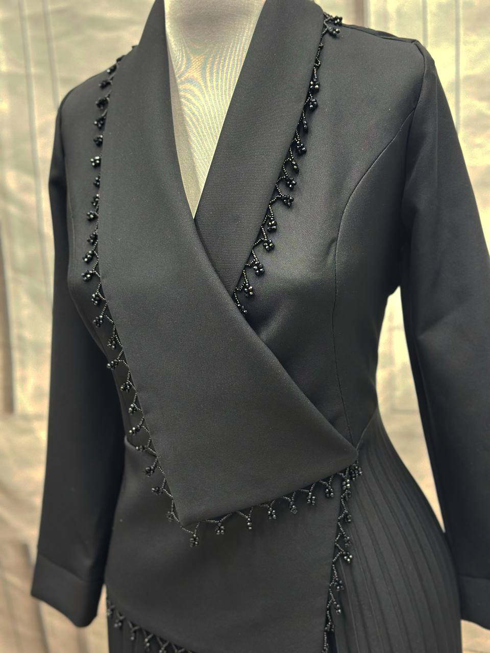 کرپ مازراتی-- بالاتنه کار تماما لایه کاری شده و متریال کریستال که با دست دوخت شده و قد ۱۲۰
