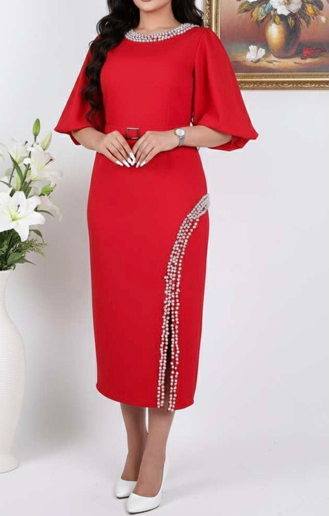 کرپ مازراتی درجه یک به همراه مروارید پانچ شده-- کمربند دارد-- قد حدودا ١٢٨
