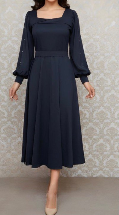 غواصی-- قد ١٢٠-- قد آستین ۶٠-- پشت زیپ دارد-- کمربند دارد-- آستین لایه تور داره که با گیپور تزیین شده-- مروارید پانچ شده