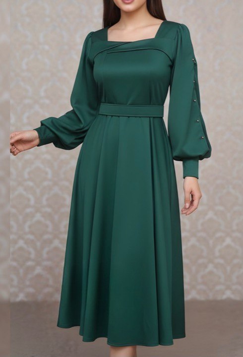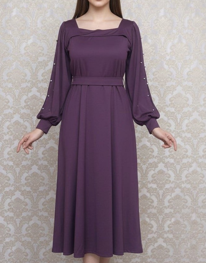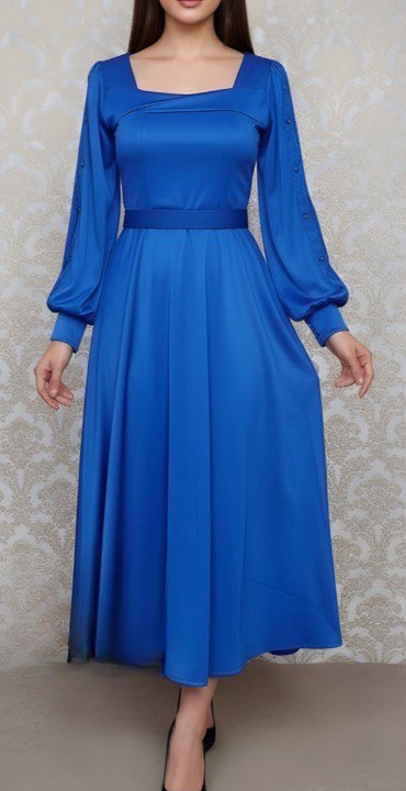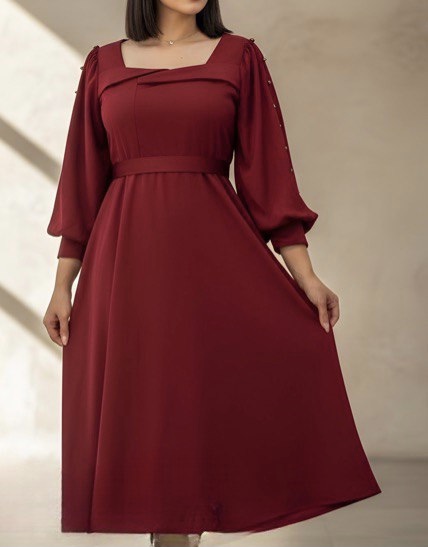 غواصی-- قد ١٢٠-- قد آستین ۶٠-- پشت زیپ دارد-- کمربند دارد-- آستین لایه تور داره که با گیپور تزیین شده-- مروارید پانچ شده