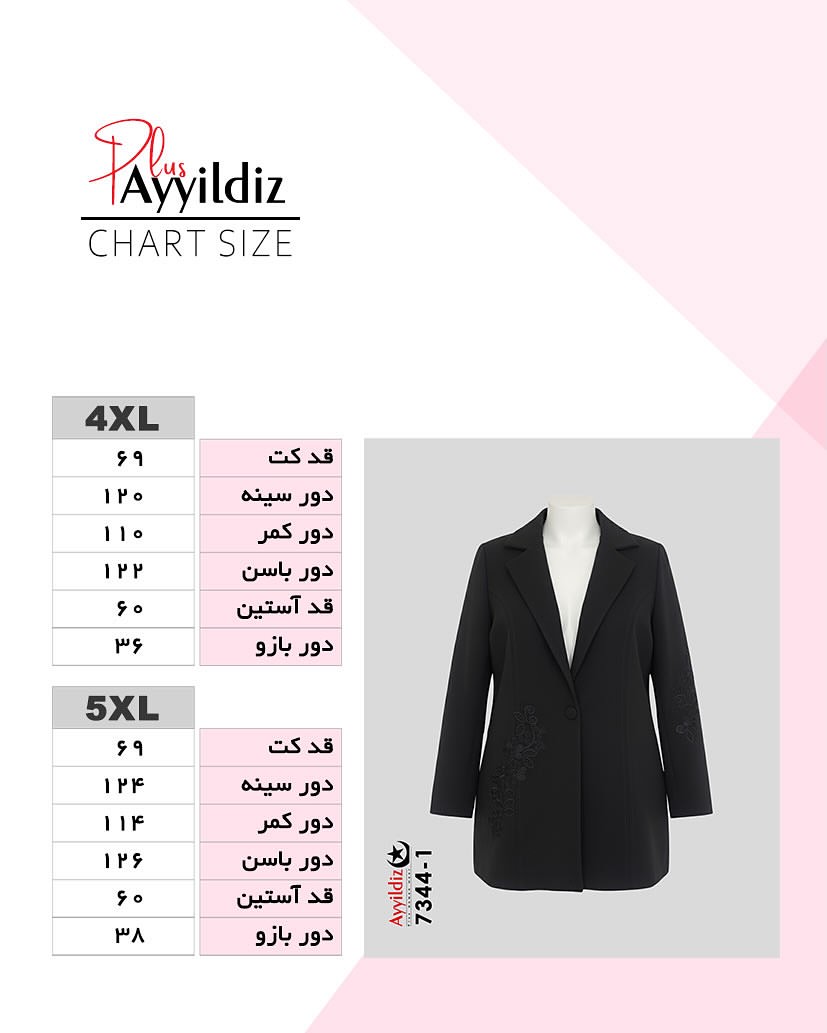 کت زنانه مجلسی سایز بزرگ سری AyLux کد 7344 (پیش فروش 10 روزه سفارشی دوز)