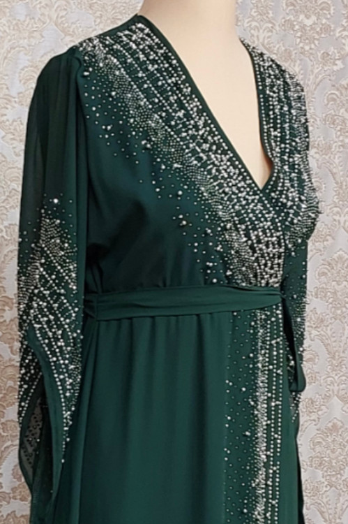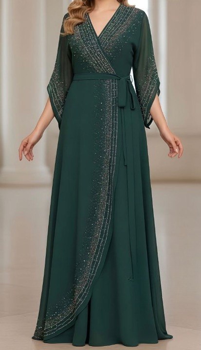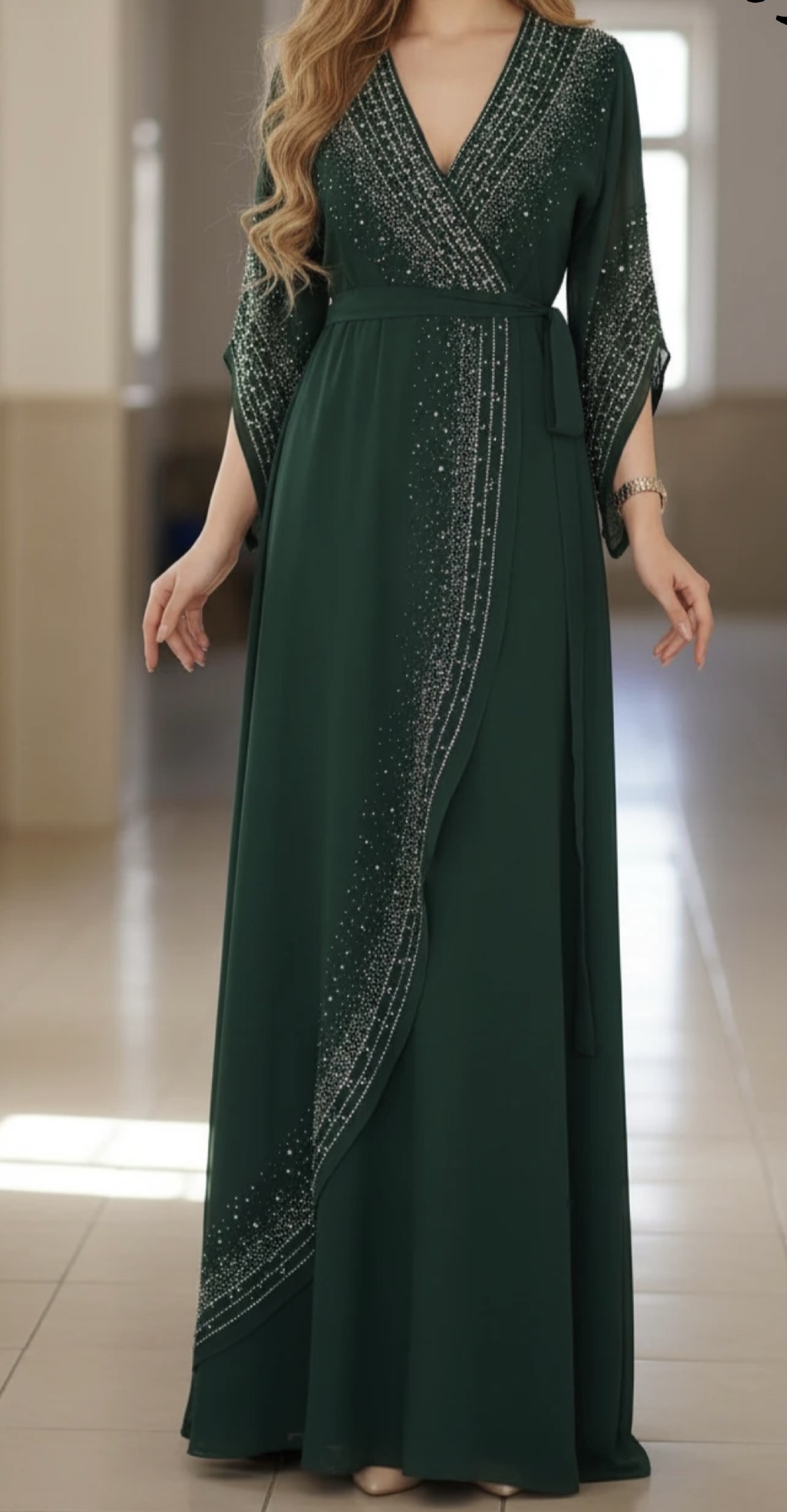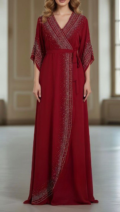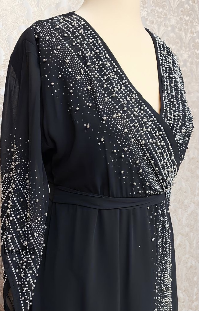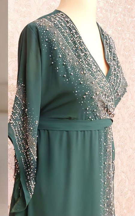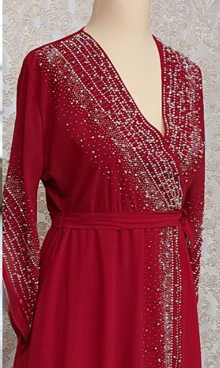 حریر سنگ کاری شده-- قد ١۵٠-- کمربند دارد-- زیپ دارد