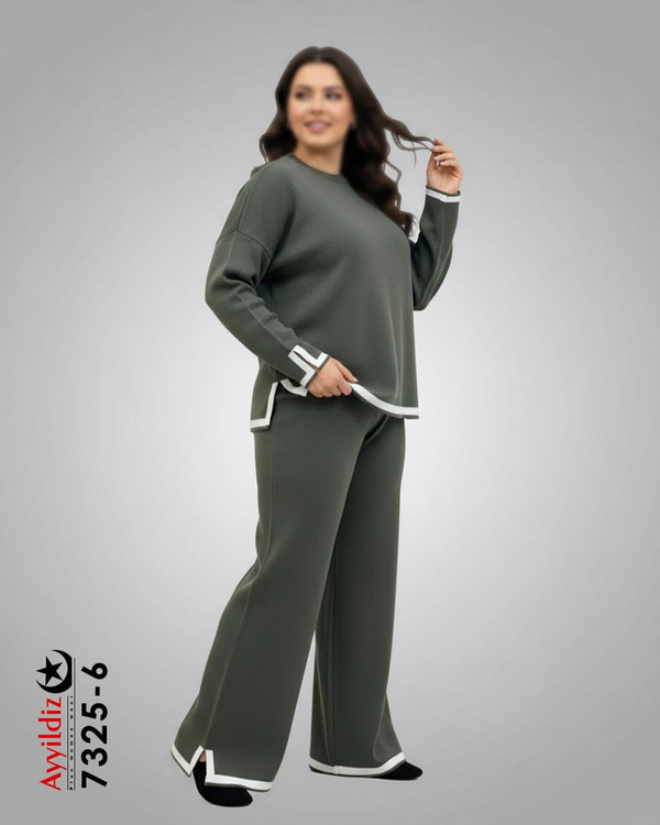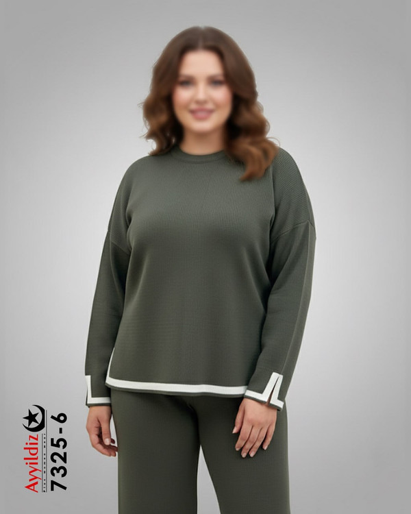 ست بلوز شلوار بافت سایز بزرگ زنانه کد 7325
