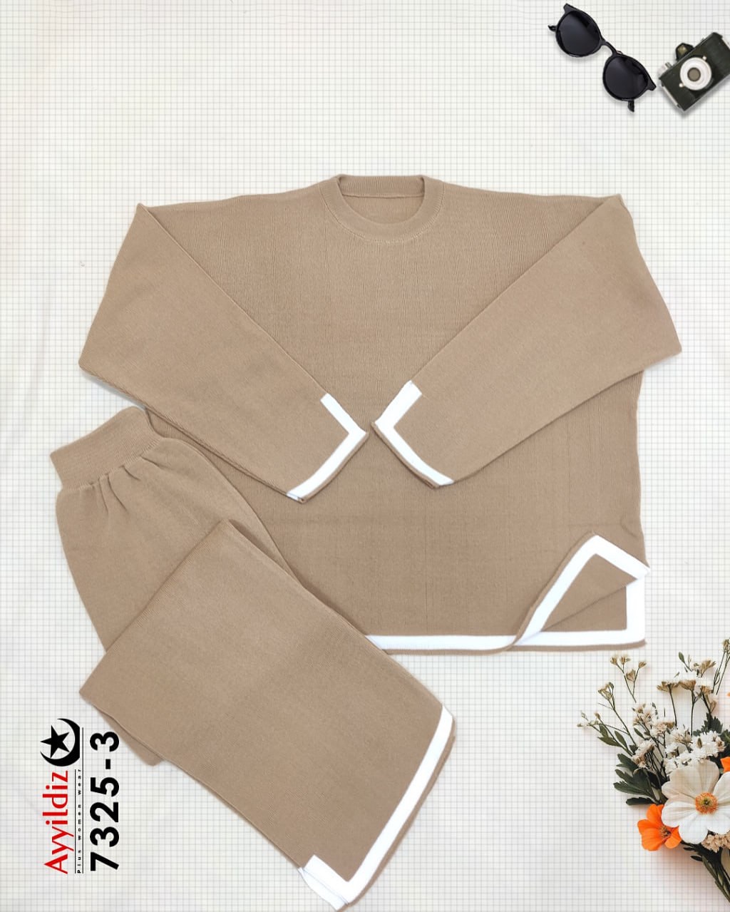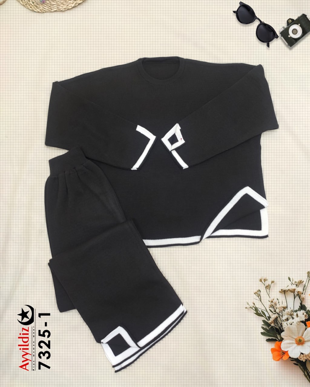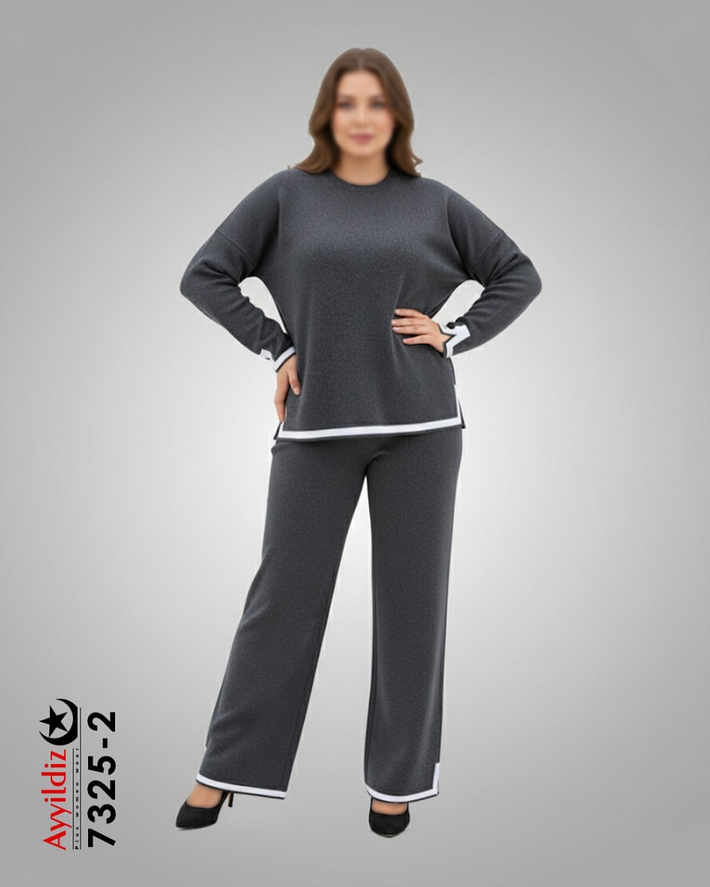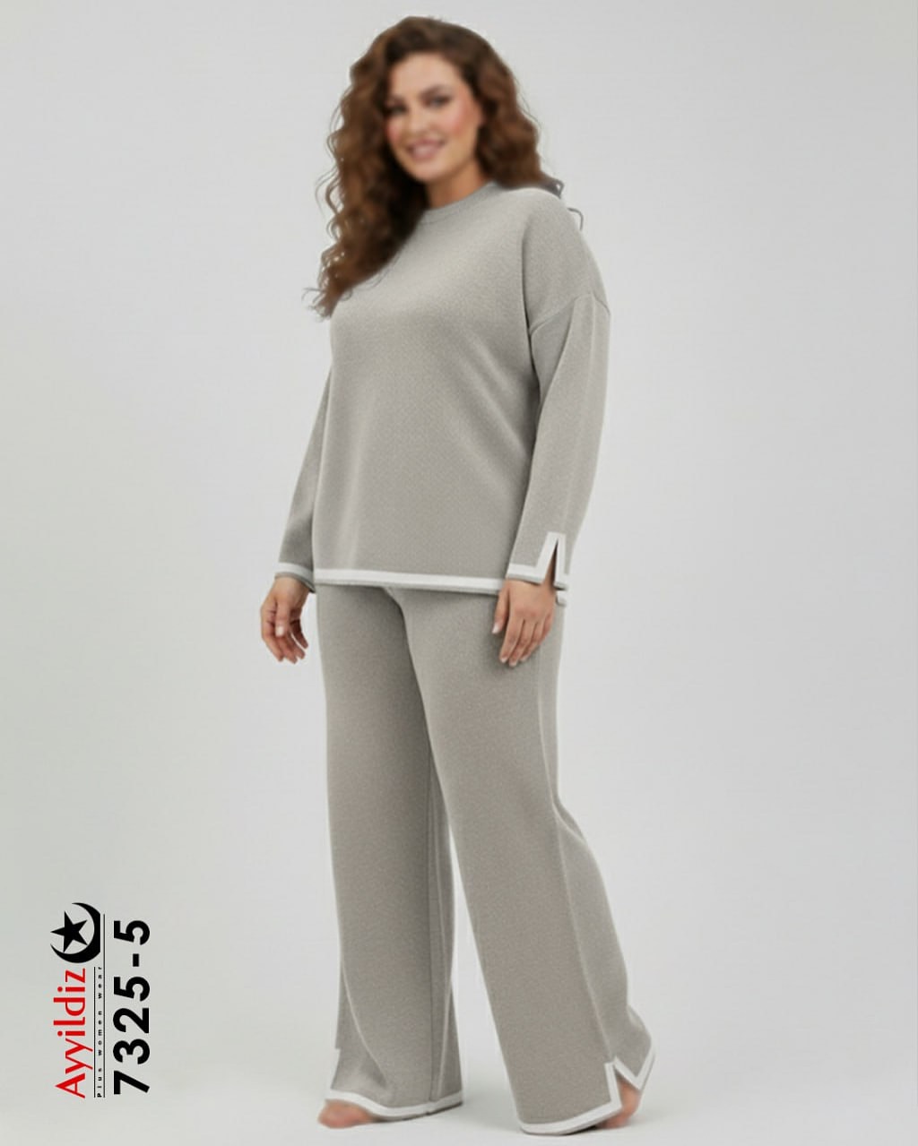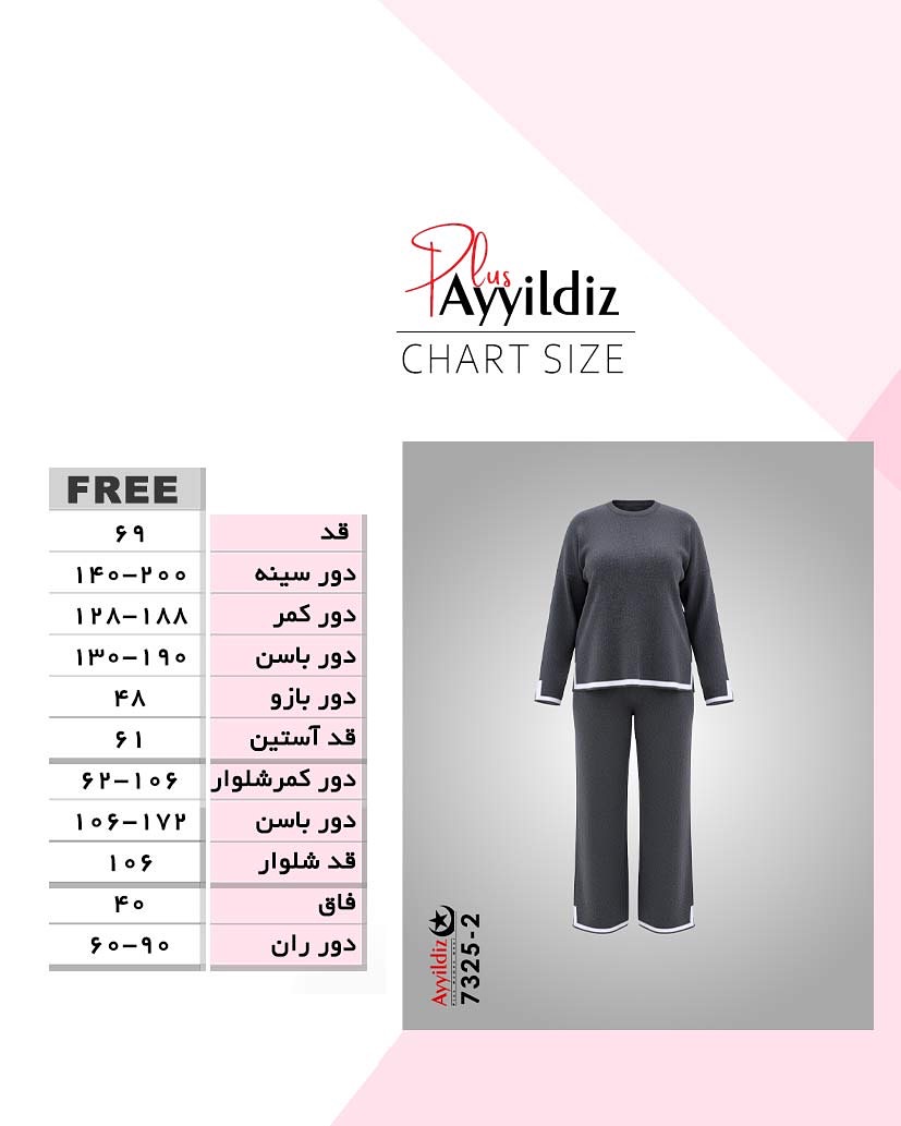 ست بلوز شلوار بافت سایز بزرگ زنانه کد 7325
