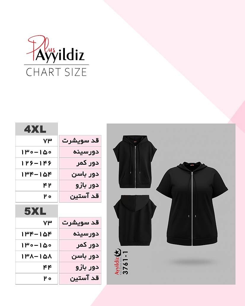 سویشرت آستین کوتاه سایز بزرگ زنانه کد 3761