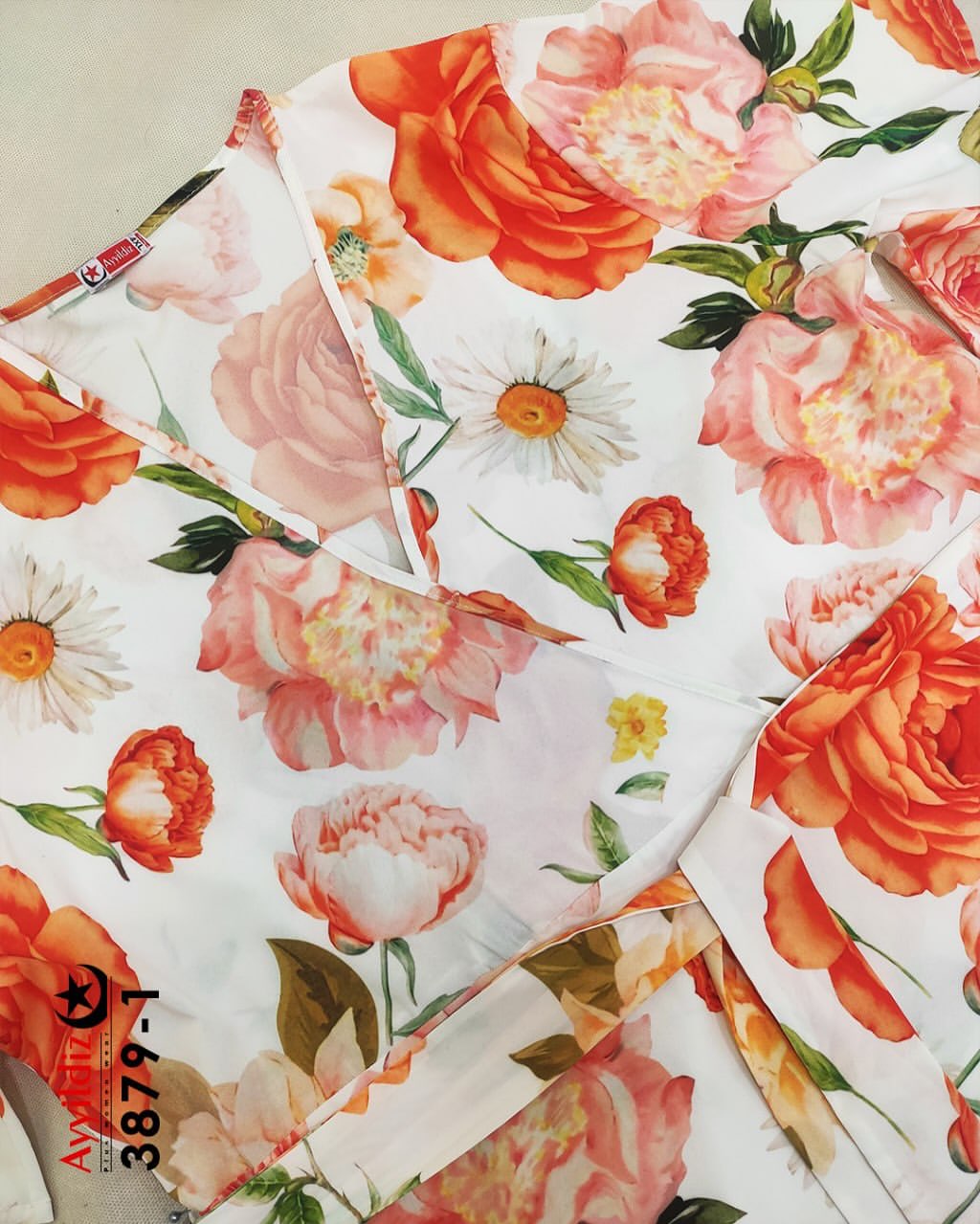 دوخت و کیفیت تضمینی، تنخور عالی، سایز 4 مناسب 44 تا 48، سایز 5 مناسب 50 تا 56، جنس کرپ حریر اعلا، رنگ: تصویر کاتالوگ.