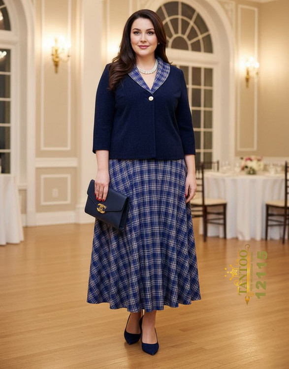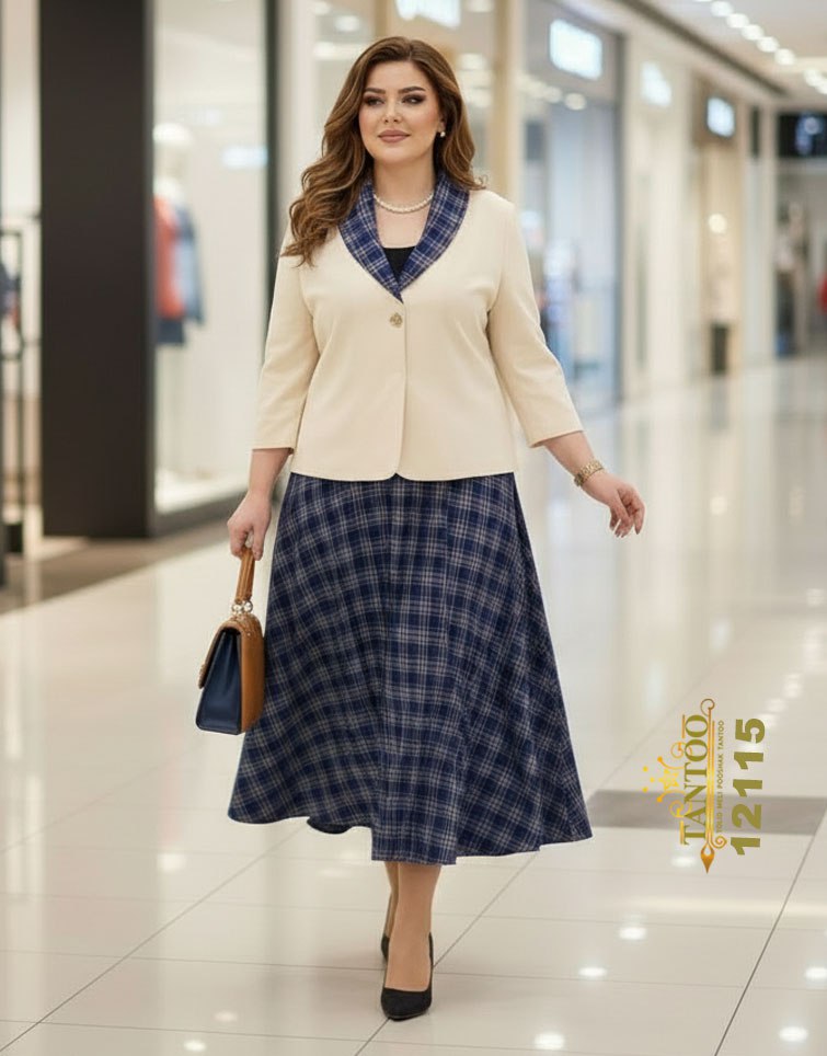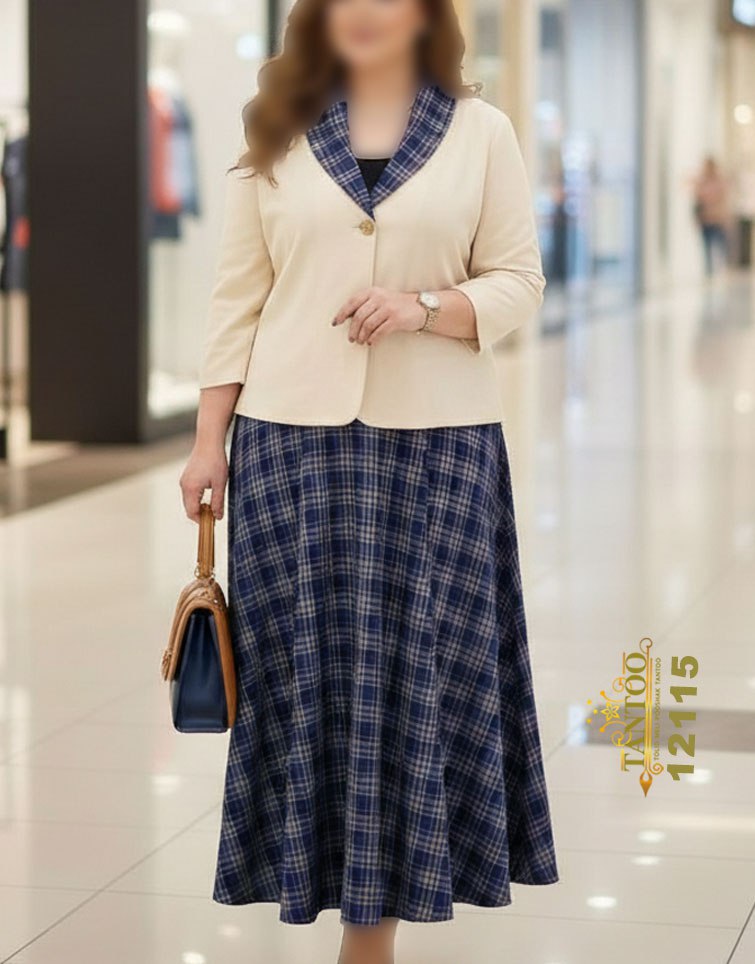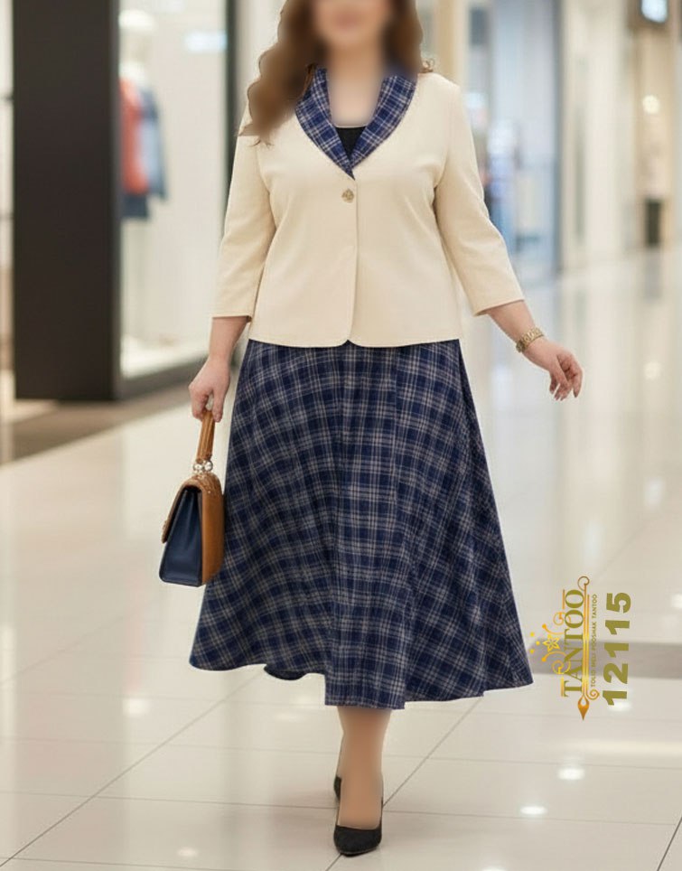 ست کت و دامن زنانه مجلسی کلوش سایز بزرگ کد ۱۲۱۱۵