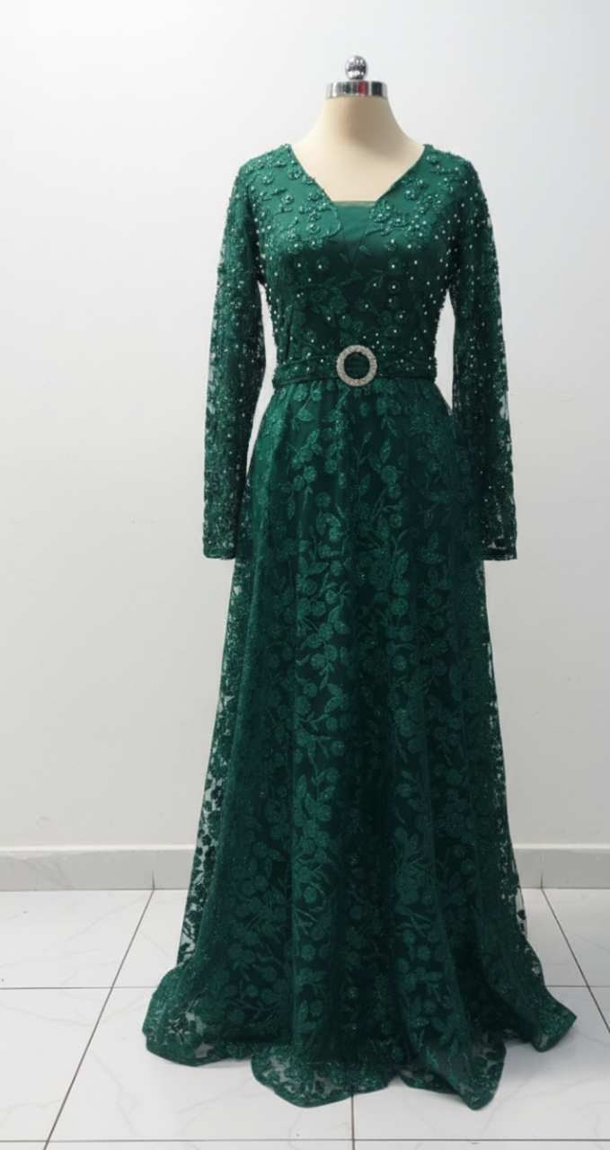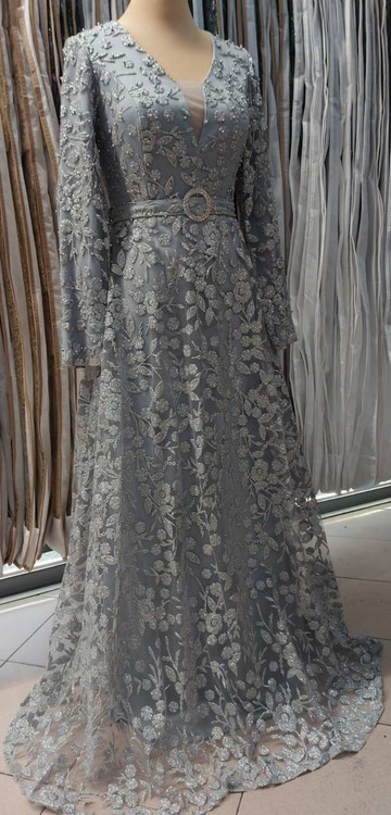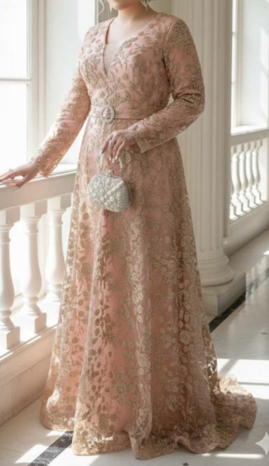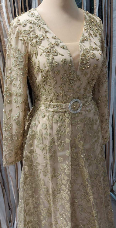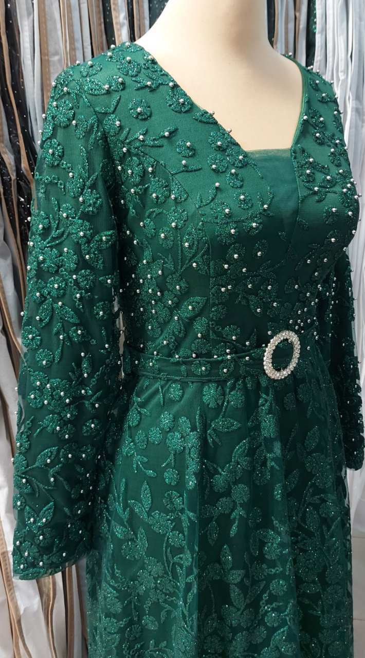 حریر شاین پفکی همراه با کمربند و مروارید پانچ شده __قد حدودا ۱۵۵