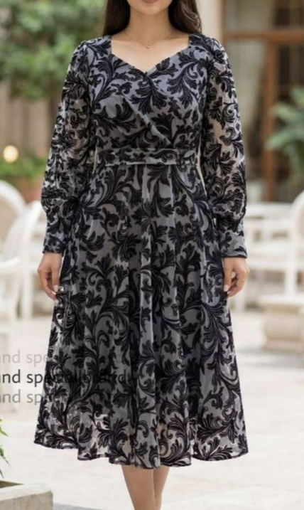 فلوک طرح دار-- قد ١١٠-- پشت زیپ دارد